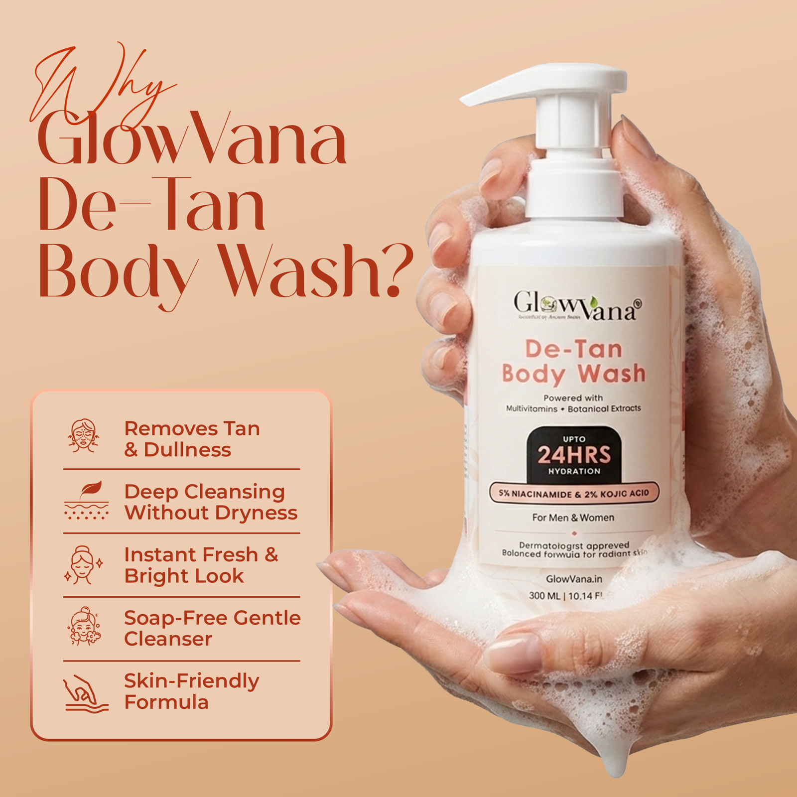 GlowVana De-Tan Body Wash is your perfect everyday solution for cleaner, brighter, and healthier-looking skin.